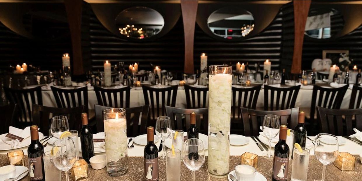 The space is surrounded by beautifully etched glass walls. It is separated from the main dining room with its own kitchen access and proximity to restrooms. The private event room is also equipped with a state-of-the-art sound system and projection screen, perfect for a business presentation or photo slideshows. The room can also be set up in different layouts to accommodate your needs. We can also custom create a menu and even a welcome cocktail with your direction, making your event, completely your own. We’ll perfect the details, work within your budget and wow your guests in the end.